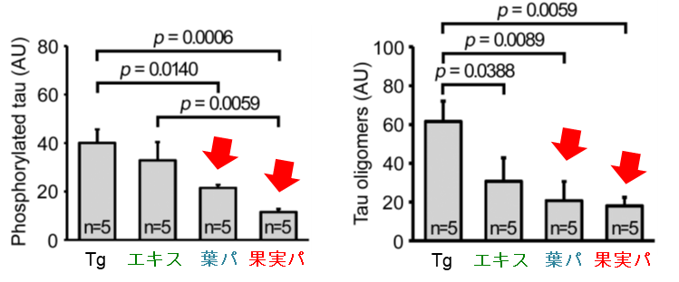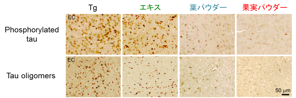 病理学的分析においても、この序列は裏付けられました。リン酸化タウの減少、タウオリゴマーの減少、およびシナプトフィジンレベルの回復において、果実粉末が最も高い効果を発揮し、熱水抽出物は最も弱い効果しか示しませんでした 1