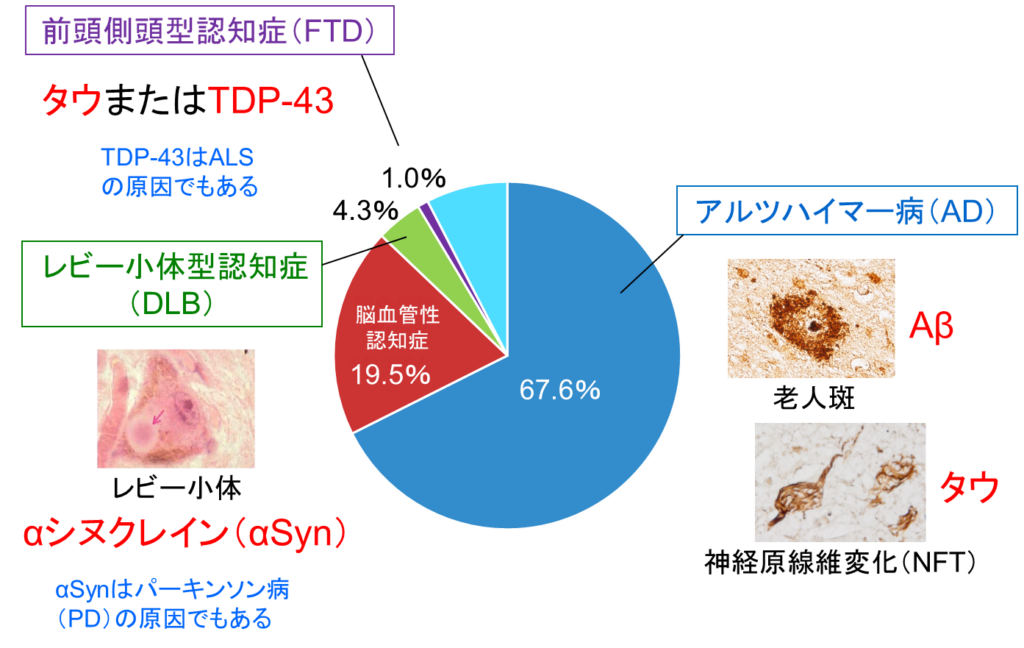 年を重ねるにつれて、私たちの脳は自然と老化していきます。その中で、認知症やパーキンソン病といった神経変性疾患は、脳に異常なタンパク質が蓄積することで引き起こされる病気として知られています。アルツハイマー病ではアミロイドベータ(Aβ)やタウ、パーキンソン病ではα(アルファ)シヌクレインというタンパク質が原因となります。これらのタンパク質が脳内で毒性を持つオリゴマーや線維に凝集すると、シナプスの機能が失われ、神経細胞がダメージを受け、最終的には認知機能や運動機能の低下につながります。
